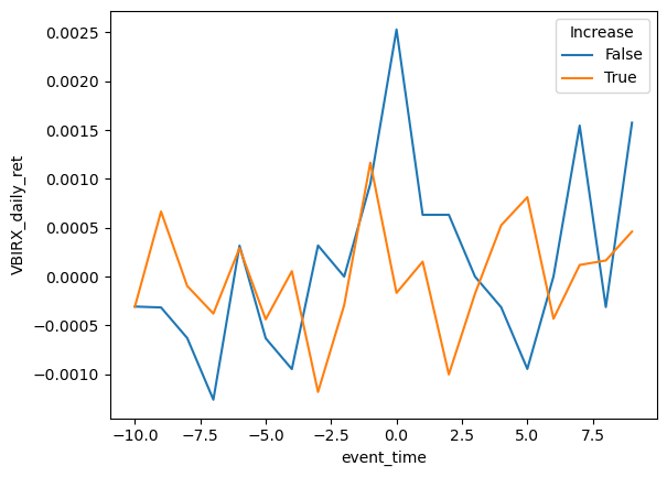From this plot we are able to analyze the impact of the negative and positive rates on the returns of VBIRX